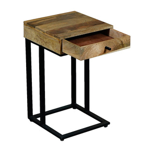 This high quality side table has a great modern style - suitable for any home decor. The table top is made from durable solid mango wood and the metal legs add to the modern style while providing a strong support.